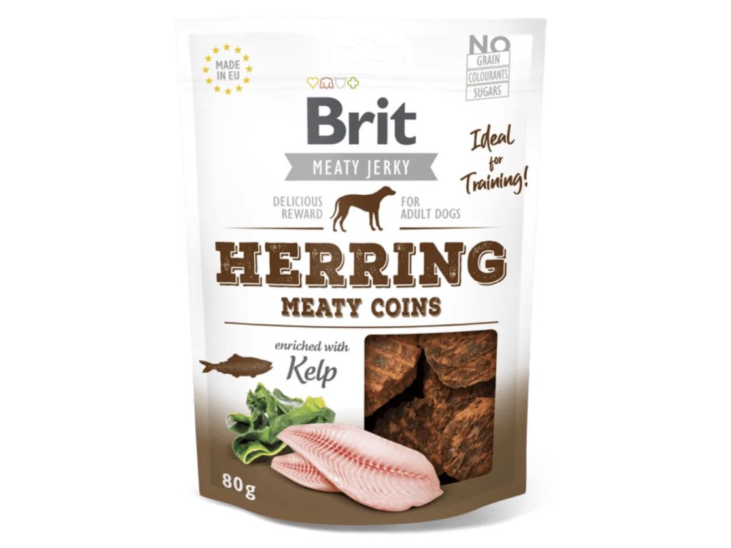 Brit Meaty Coins sú chutné maškrty v podobe mäsových mincí z kuracieho mäsa a sleďa pre dospelé psy.