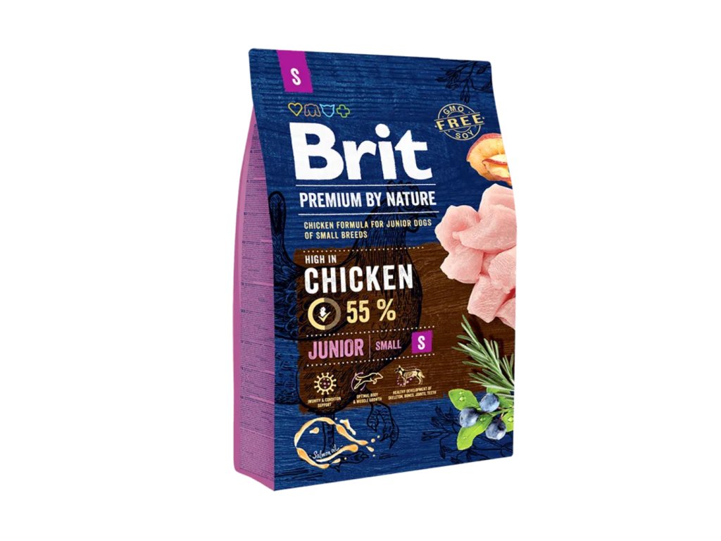 Brit Premium by Nature Junior S je kompletné krmivo špeciálne vyvinuté pre šteňatá, gravidné a dojčiace psy malých plemien s hmotnosťou 1-10 kg. Táto receptúra s kuracím mäsom obsahuje 55 % mäsa a poskytuje vysoko stráviteľné bielkoviny nevyhnutné pre správny rast svalov a telesný vývoj. Vďaka kombinácii kuracieho mäsa, lososového oleja a prírodných prísad ponúka komplexnú výživu počas fázy intenzívneho rastu.