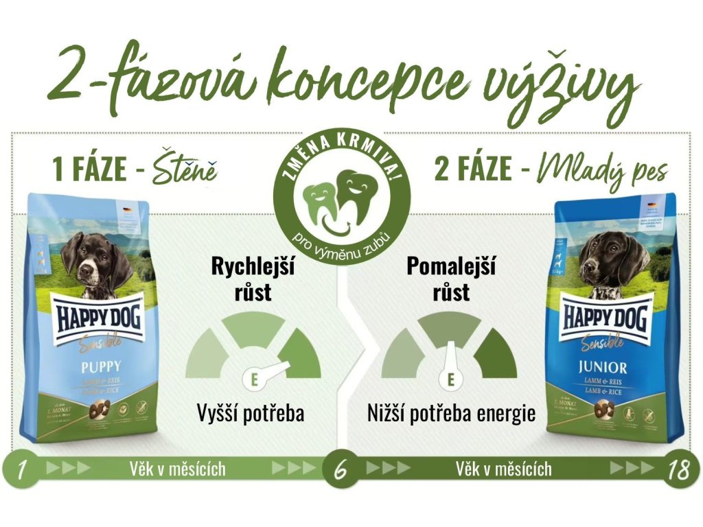 Optimálna starostlivosť o vášho mladého psa s krmivem Happy Dog Sensible Junior Lamb & Rice