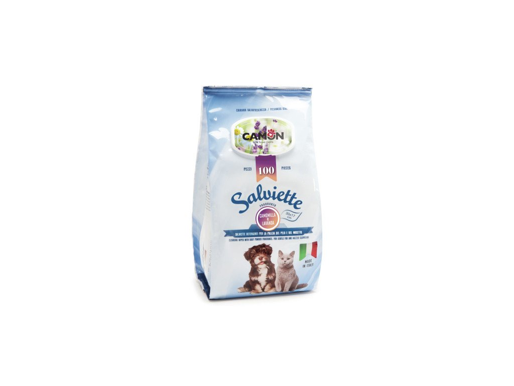 Čistiace obrúsky na čistenie srsti a ňufáka, s vôňou harmančeka a levandule, v maxi formáte 100 kusov.