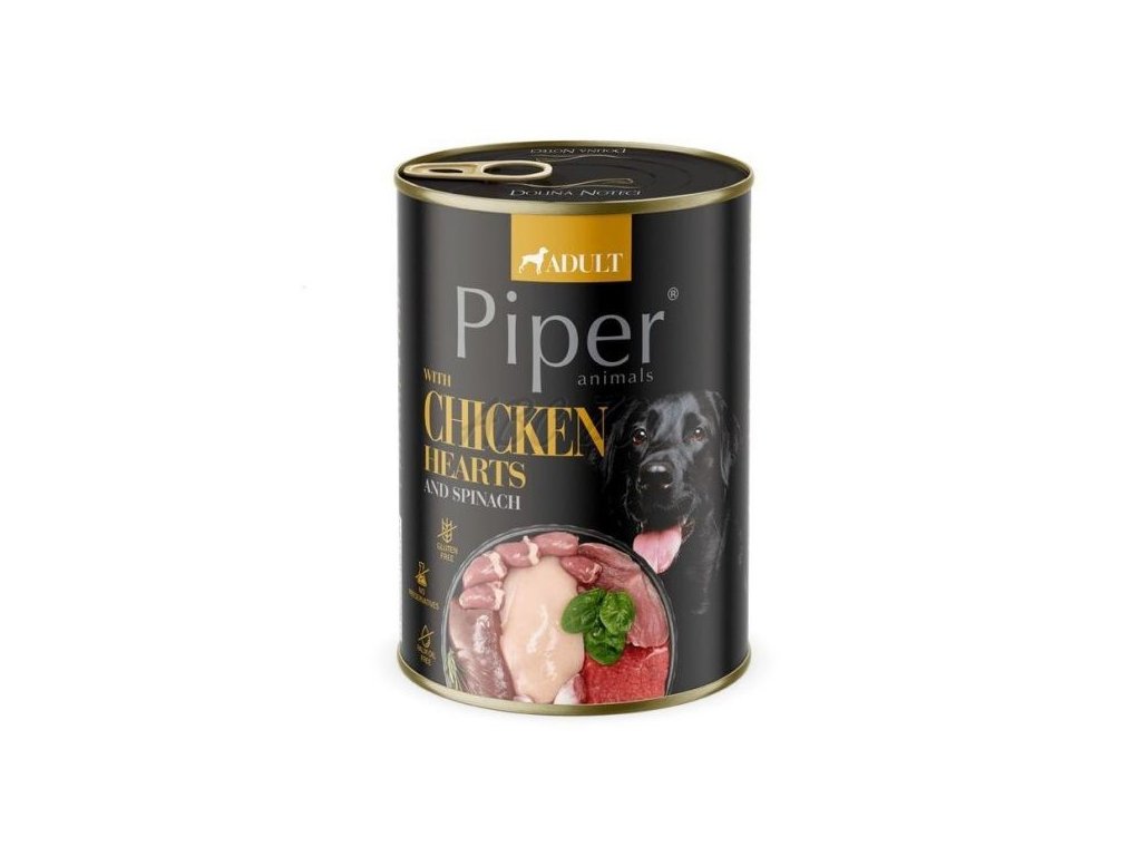 PIPER konzerva pre psa kuracie srdiečka so špenátom, 800g